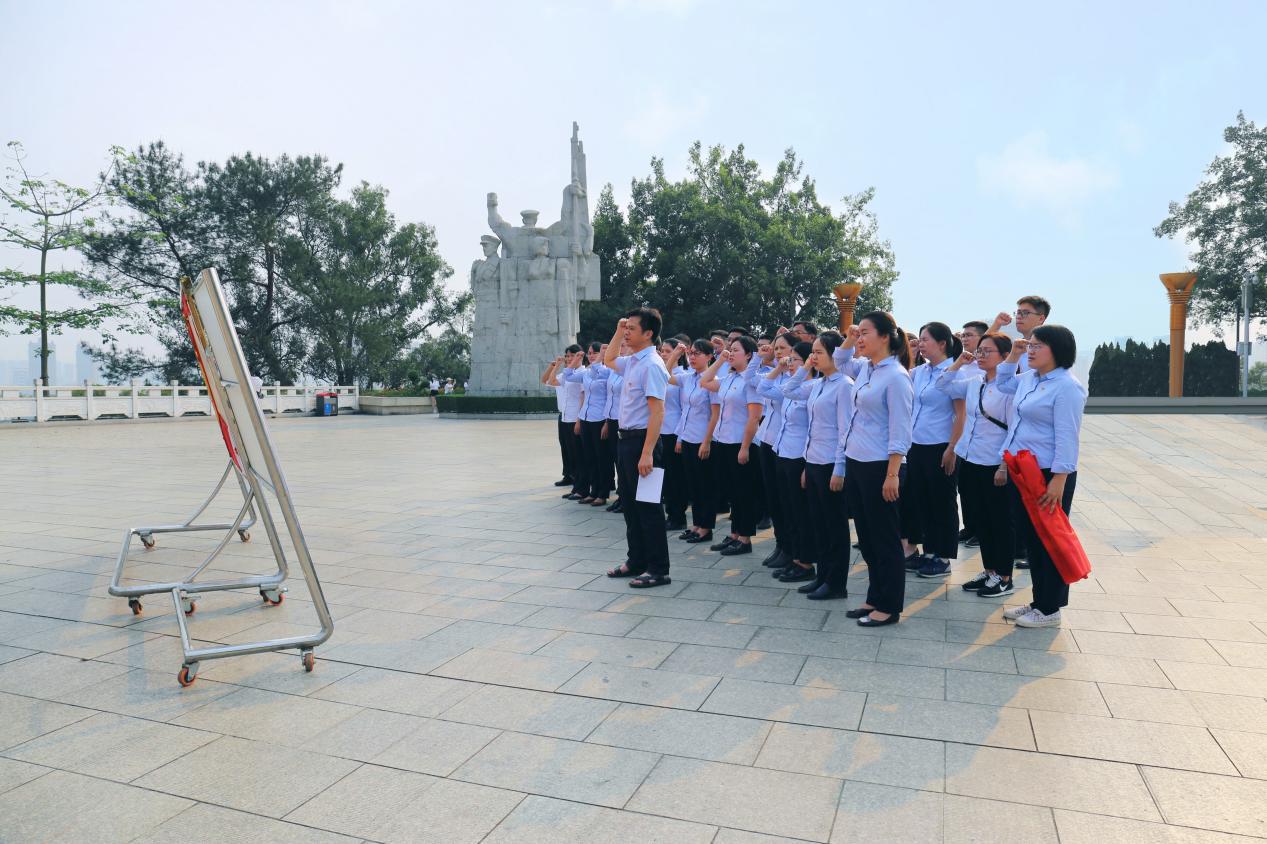 ????????隨后,30余名黨員面向黨旗莊嚴(yán)宣誓,重溫入黨誓詞?!拔抑驹讣尤胫袊伯a(chǎn)黨,擁護(hù)黨的綱領(lǐng),遵守黨的章程……”鏗鏘有力的宣誓聲,響徹紀(jì)念碑園。表達(dá)了緬懷革命先烈,傳承紅色基因的真摯感情和堅定信心。