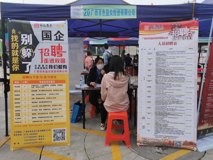 ????????近日,益眾公司組織參加2021屆廣西財(cái)經(jīng)類(lèi)高校畢業(yè)生就業(yè)雙向選擇洽談會(huì)和2020年百色市離校未就業(yè)高校畢業(yè)生專(zhuān)場(chǎng)招聘會(huì) 。