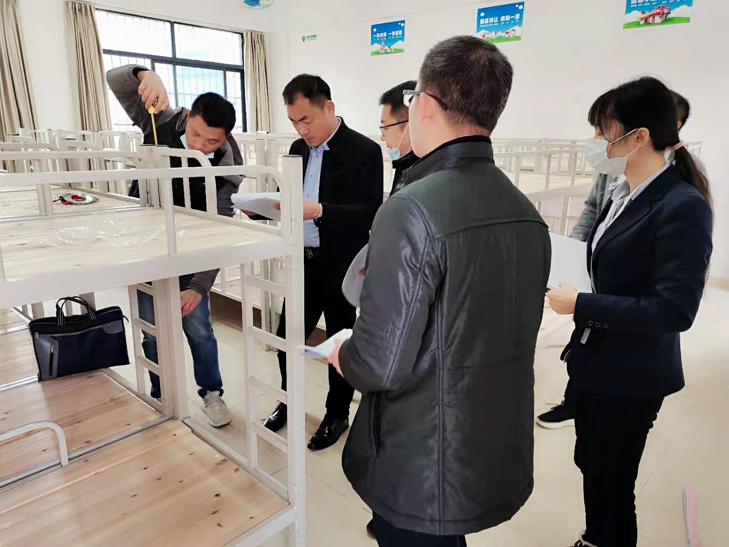 驗收組檢查宿舍新床架規(guī)格