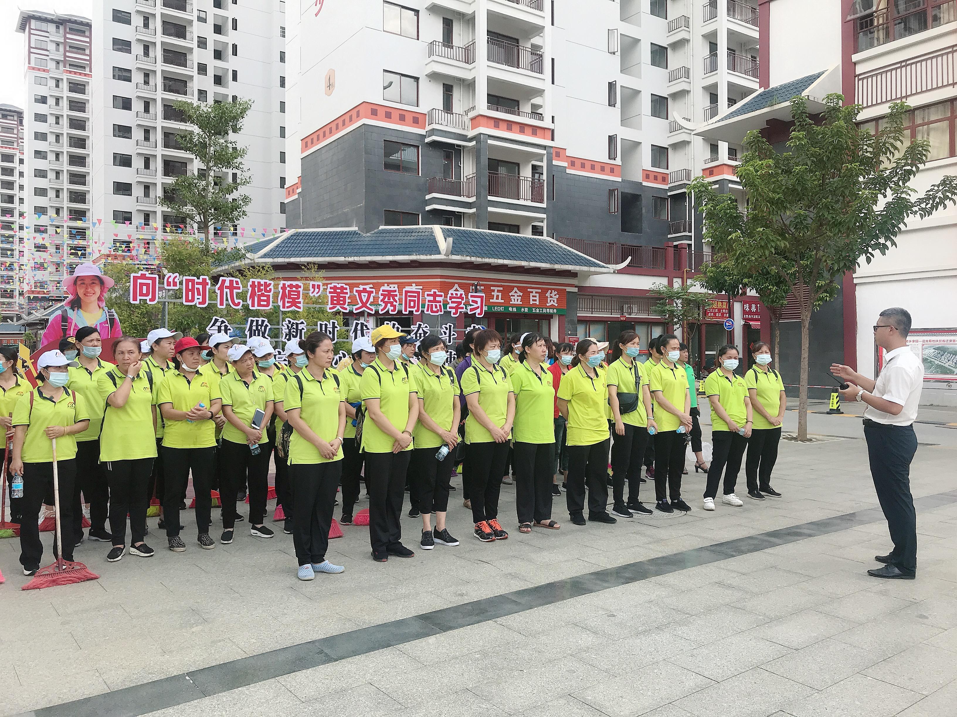 ????????為向黃文秀同志學(xué)習(xí)熱愛家鄉(xiāng)、服從組織、無私奉獻(xiàn)的精神,近日,益眾托管公司組織各校區(qū)直屬班組員工到老鄉(xiāng)家園—迎龍易地扶貧搬遷安置點(diǎn)開展“學(xué)文秀、創(chuàng)先鋒”主題活動(dòng)。