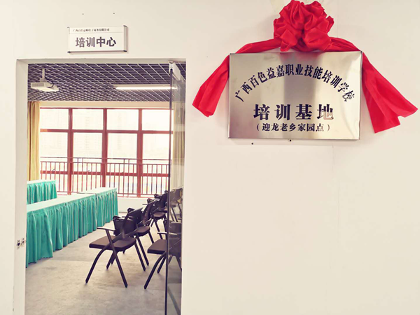4月1日,廣西百色益嘉職業(yè)技能培訓(xùn)學(xué)校(簡(jiǎn)稱益嘉職校)在老鄉(xiāng)家園—迎龍安置小鎮(zhèn)設(shè)立培訓(xùn)基地并正式掛牌營業(yè)。