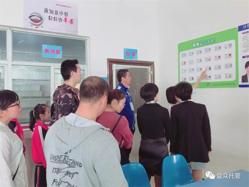 益眾托管公司校區(qū)負(fù)責(zé)人介紹菜譜公示欄,