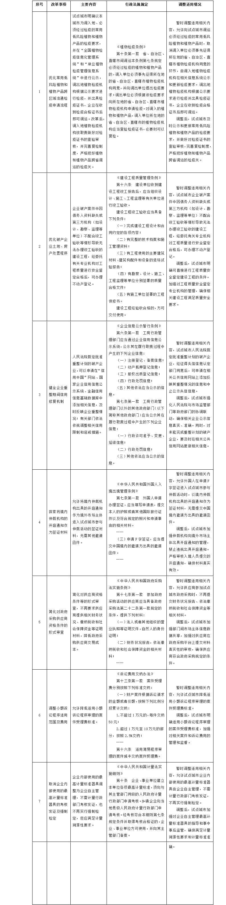 2.國務(wù)院決定在營商環(huán)境創(chuàng)新試點城市暫時調(diào)整適用有關(guān)行政法規(guī)規(guī)定目錄